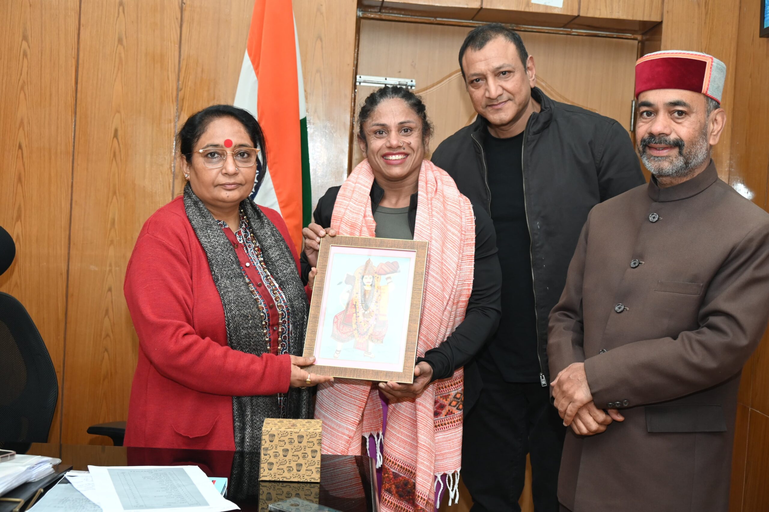 उत्तराखंड की अंतरराष्ट्रीय महिला बॉडीबिल्डर श्रीमती प्रतिभा थपलियाल ने आज यमुना कॉलोनी, देहरादून स्थित शासकीय आवास पर उत्तराखंड विधानसभा अध्यक्ष एवं कोटद्वार की विधायक श्रीमती ऋतु खण्डूडी भूषण से शिष्टाचार भेंट की। इस अवसर पर श्रीमती खण्डूडी भूषण ने बॉडीबिल्डिंग के क्षेत्र में उनकी असाधारण उपलब्धियों के लिए उन्हें शॉल ओढ़ाकर तथा स्मृति-चिह्न एवं उपहार भेंट कर सम्मानित किया।