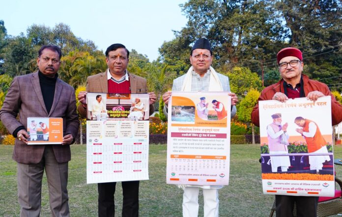देहरादून। मुख्यमंत्री पुष्कर सिंह धामी ने मुख्यमंत्री आवास में सूचना विभाग द्वारा प्रकाशित नववर्ष 2026 के कैलेंडर का विमोचन किया। मुख्यमंत्री ने कैलेंडर के आकर्षक स्वरूप, उत्कृष्ट मुद्रण एवं विषयवस्तु की सराहना करते हुए कहा कि यह कैलेंडर राज्य सरकार की योजनाओं, उपलब्धियों तथा जनकल्याणकारी नीतियों के साथ-साथ सरकार द्वारा लिए गए ऐतिहासिक एवं दूरदर्शी निर्णयों को प्रभावी ढंग से जनमानस तक पहुँचाने का सशक्त माध्यम है।