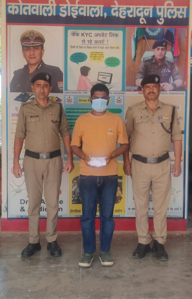 निर्देशो के अनुपालन मे कोतवाली डोईवाला पर गठित टीम द्वारा दिनांक 17.04.26 को चेकिंग के दौरान राजीवनगर तिराहा डोईवाला के पास से एक अभियुक्त मौ0 साहिल पुत्र स्व0 रियात अली निवाली ग्राम नियामवाला डोईवाला देहरादून उम्र 28 वर्ष को 115 ग्राम अवैध चरस के साथ गिरफ्तार किया गया। अभियुक्त के विरुद्ध कोतवाली डोईवाला पर *मु0अ0सं0-122/2026 धारा 8/20 NDPS ACT* का अभियोग पंजीकृत किया गया।