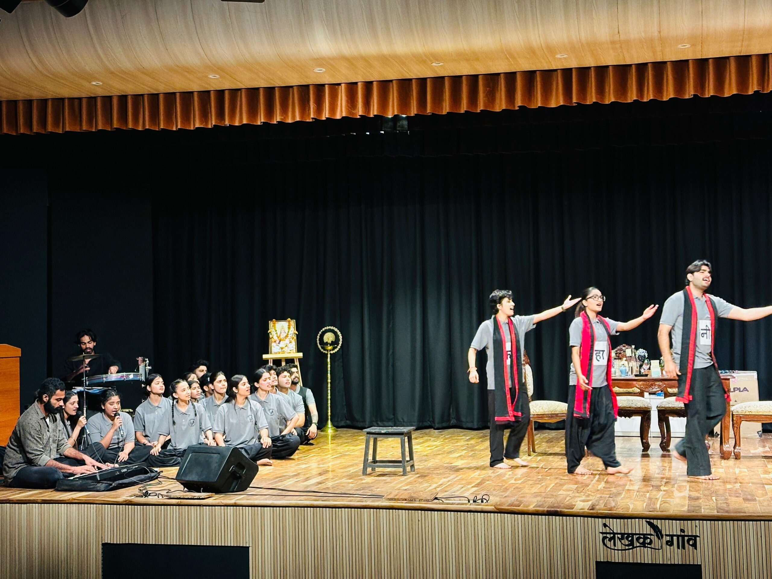 नाटक में तीन कथावाचक—‘का’, ‘हा’ और ‘नी’—रहे, जो पूरे कथानक को रोचक ढंग से आगे बढ़ाते हैं। इसके साथ ही कई कलाकार शरारती अंदाज़ में अलग-अलग किरदारों में मंच पर आते हैं और कहानी में प्रवेश करने की कोशिश करते हुए हास्य और नाटकीयता का वातावरण रचते हैं।