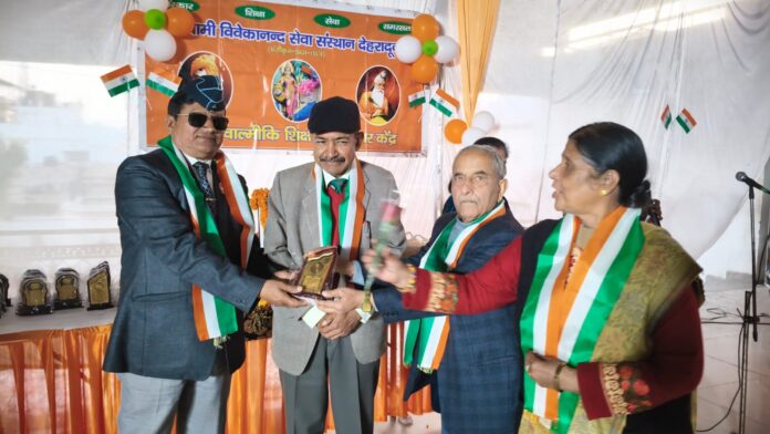 सभी मंचासीन महानुभावों एवं कार्यक्रम अध्यक्ष श्री ए के कौल, पुनीत सहगल व संजय भाटिया जी के कर कमलों द्वारा पूर्व सैनिकों और वीर नारियों को सम्मानित करते हुए स्मृति चिह्न प्रदान किए गए। स्वामी विवेकानंद सेवा संस्थान के उपस्थित सदस्य जे सी पांडे, डी के बंसल, कुकरेती, पंडित लोहनी ने मंचासीन महानुभावों को तिरंगा पटका भेंट कर स्वागत किया।