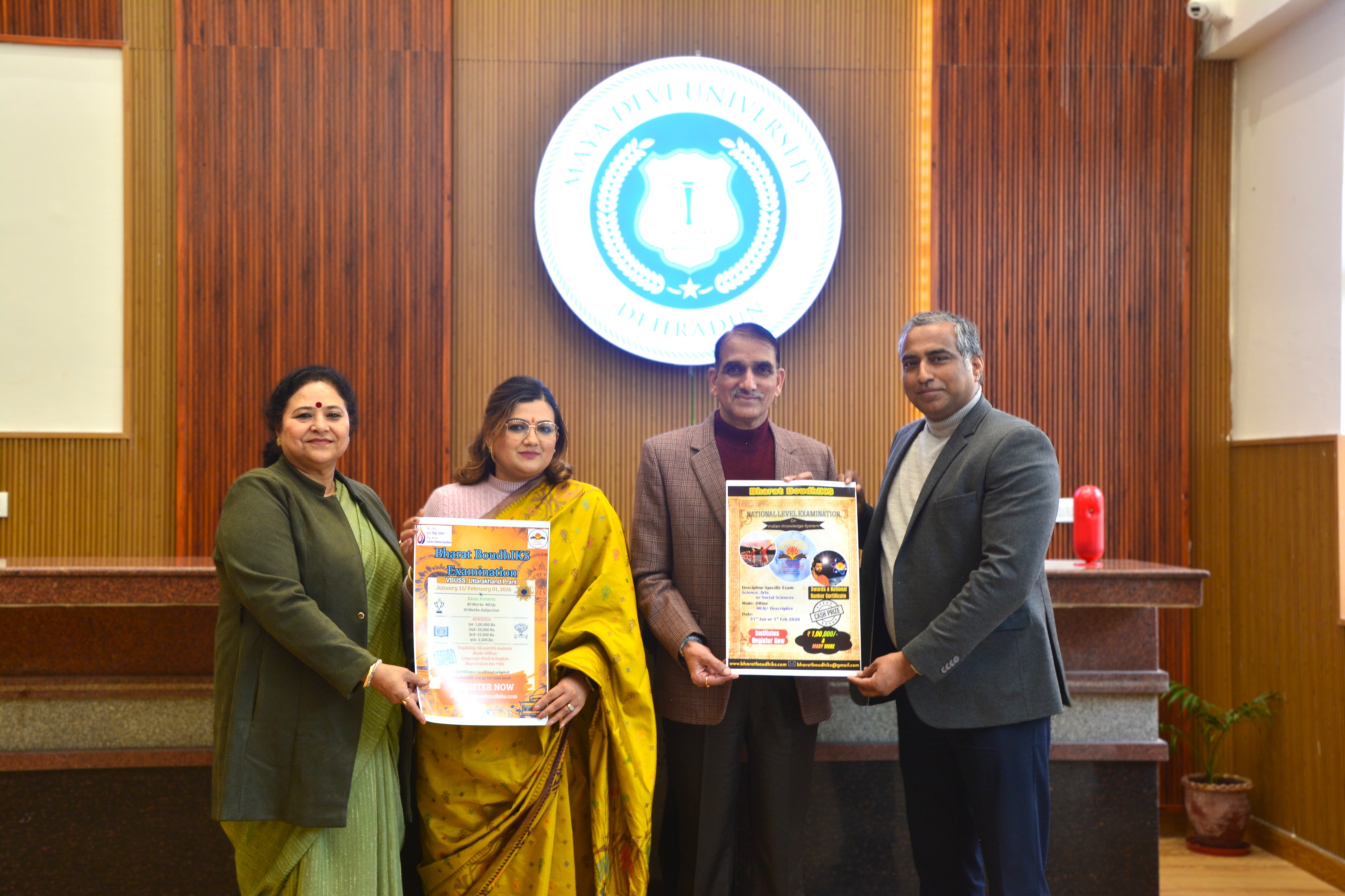 आज माया देवी विश्वविद्यालय में विद्या भारती उच्च शिक्षा संस्थान राष्ट्रीय स्तर बोधआईकेएस परीक्षा–2026 के पोस्टर का लोकार्पण किया गया। कार्यक्रम में लोकसेवा आयोग, उत्तराखंड के पूर्व अध्यक्ष एवं वर्तमान प्रांतीय अध्यक्ष वीबीयूएसएस, प्रो. (डॉ.) जगमोहन सिंह राणा के साथ विश्वविद्यालय के कुलपति डॉ. आशीष सेमवाल, उपाध्यक्ष डॉ. तृप्ति जुयाल तथा प्रो. (डॉ) अनीता रावत, उच्च शिक्षा विभाग, उत्तराखंड सरकार की गरिमामयी उपस्थिति रही।