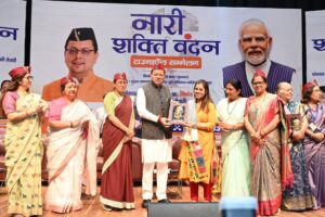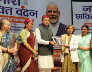 देहरादून, 15 अप्रैल। उत्तराखंड राज्य महिला आयोग के तत्वावधान में आज राजकीय दून मेडिकल कॉलेज के मुख्य सभागार में ‘नारी शक्ति वंदन सम्मेलन’ का भव्य एवं गरिमामयी आयोजन किया गया। “पंचायत से पार्लियामेंट तक, निर्णय में नारी, नव भारत की तैयारी” के ध्येय वाक्य के साथ आयोजित इस कार्यक्रम में मुख्य अतिथि के रूप में प्रदेश के मुख्यमंत्री श्री पुष्कर सिंह धामी ने प्रतिभाग किया।