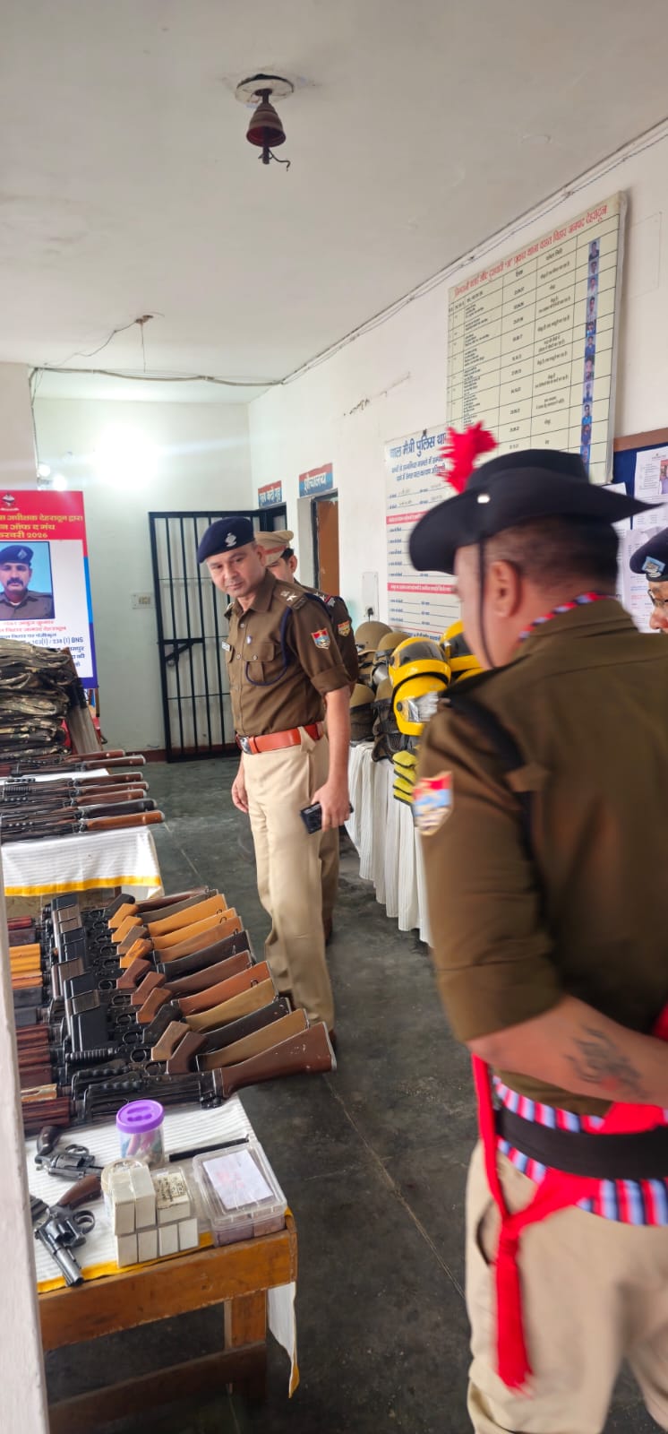 थाने पर उपलब्ध सरकारी संपत्ति व असलाह तथा दंगा नियंत्रण उपकरण , आपदा उपकरण का निरीक्षण किया गया, जिसका रखरखाव संतोषजनक पाया गया। थाने पर लंबित माल मुकदमाती, लावारिस , कुर्की आदि मालों का निरीक्षण कर उनके रखरखाव के संबंध में आवश्य निर्देश दिए गए तथा एमवी एक्ट, लावारिस व अभियोगों से संबंधित मालों का शीघ्र निस्तारण व नीलामी प्रक्रिया किये जाने हेतु मालखाना मोहर्रिर को निर्देशित किया गया। इस दौरान असलाह के खोलने और जोड़ने के संबंध में सभी उप निरीक्षक एवं मौजूद कर्म०गणों से जानकारी कर उनका अभ्यास करवाया गया।