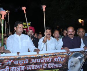 राजधानी देहरादून में चरमराई कानून व्यवस्था के खिलाफ युवा कांग्रेस ने उठाई आवाज। प्रदेश कांग्रेस कार्यालय से पुलिस मुख्यालय तक मशाल जुलूस निकाल कर धामी सरकार और पुलिस प्रशासन को चेताने का किया कामः-विनीत प्रसाद भट्ट ’बंटू’