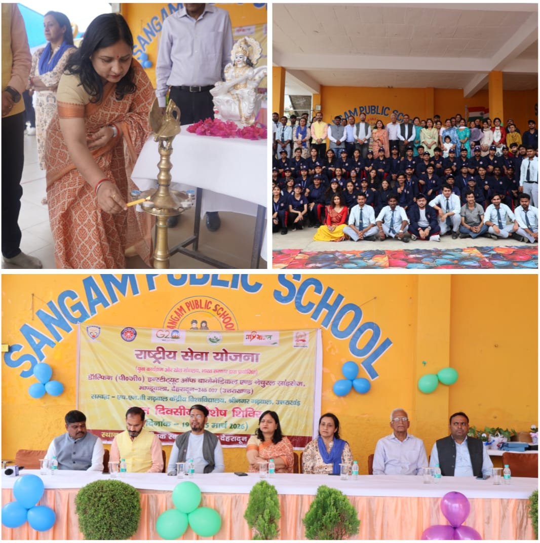 देहरादून। विकासखंड सहसपुर के ग्राम श्यामपुर स्थित संगम पब्लिक स्कूल शिविर स्थल में आज दिनांक 19 मार्च 2026 को डॉलफिन पीजी इंस्टीट्यूट (ऑटोनॉमस कॉलेज) की ओर से राष्ट्रीय सेवा योजना (NSS) का 7 दिवसीय (दिन-रात) शिविर विधिवत रूप से प्रारंभ किया गया।